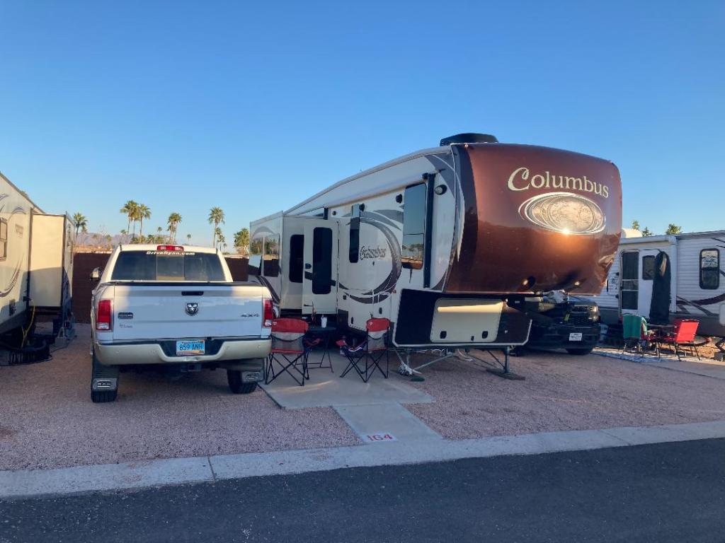 We left Bismarck on Monday Jan 17th. and made it the 1800 miles to Mesa. Route was a little longer because we looped down southern NM into AZ and back up through Tuscon to avoid weather/roads around Flagstaff (thanks for the advice, Tony and Mike). We arrived at our RV resort on Jan 20th